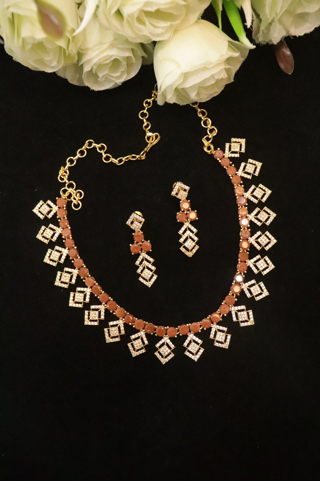 Elegant Raindrop Charm Stone Choker Set with Matching Earrings