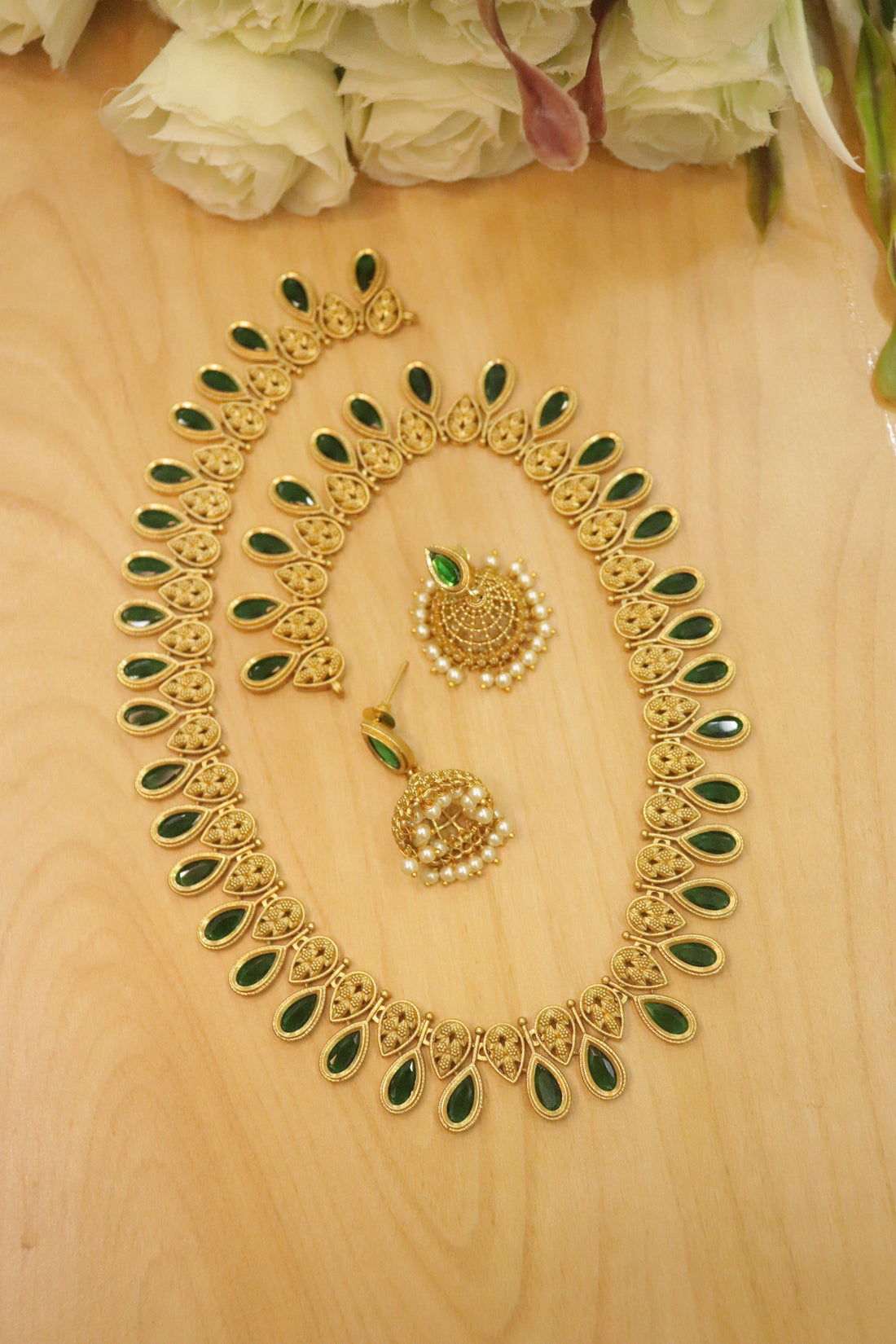 Celebrate timeless tradition with the Regal Heritage Antique AD Haram Set, a majestic piece crafted...