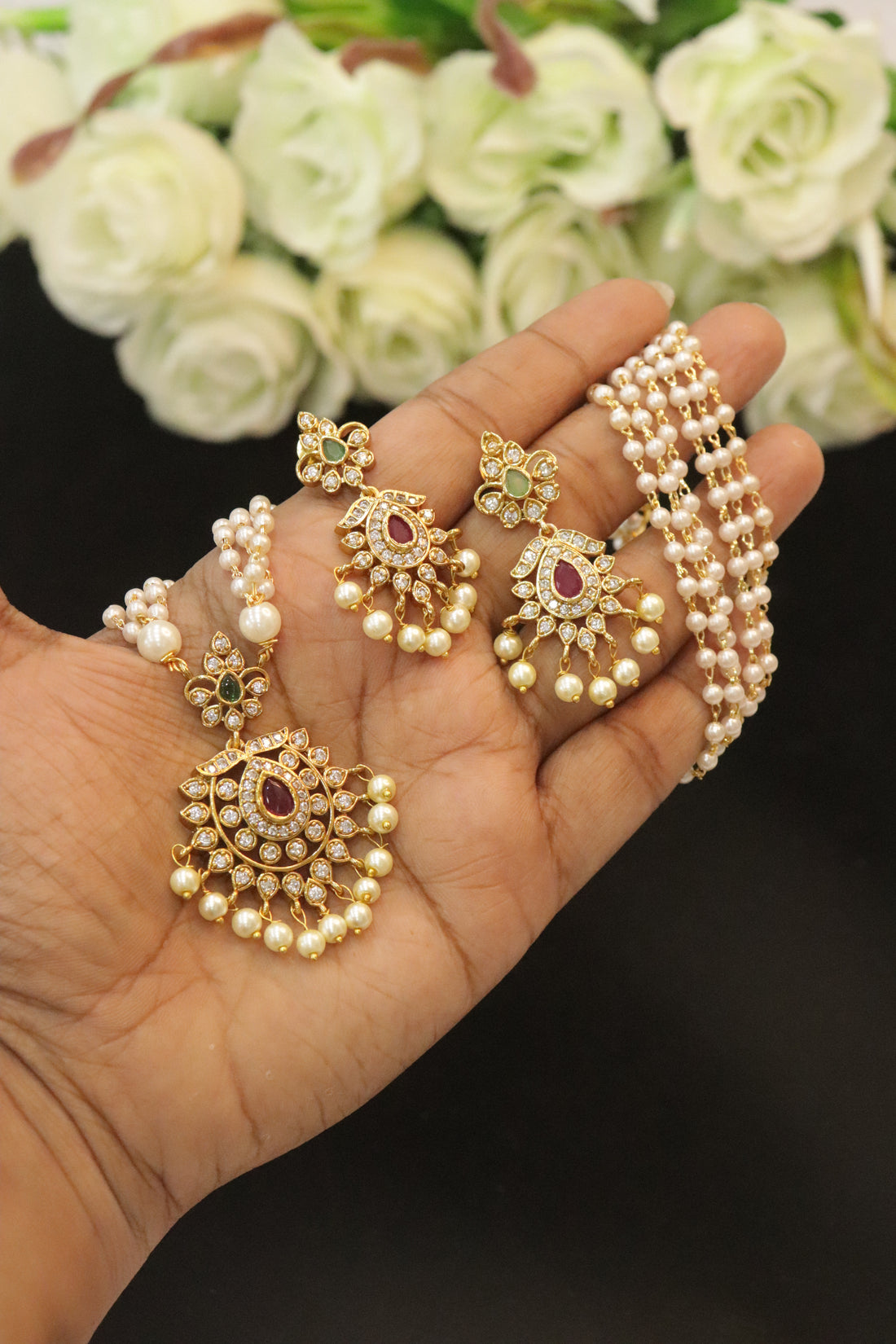 Royal Heritage Ruby Pearl AD Stone Necklace Set