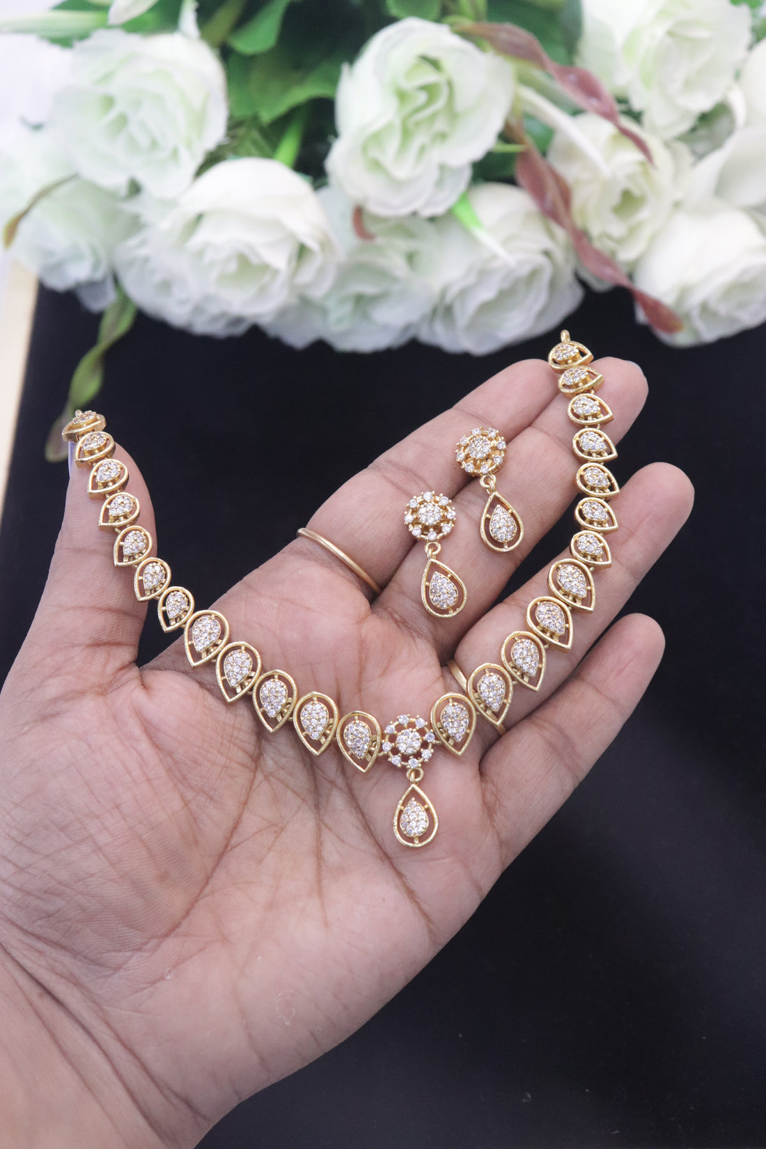 Antique Teardrop Bloom AD Necklace Set