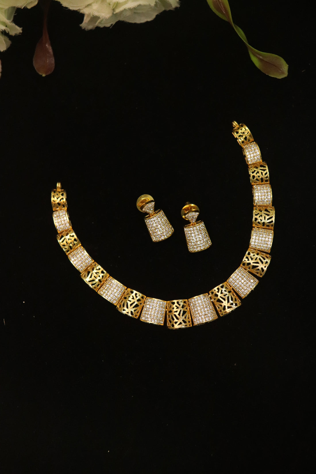Antique Floral Bloom AD Necklace Set