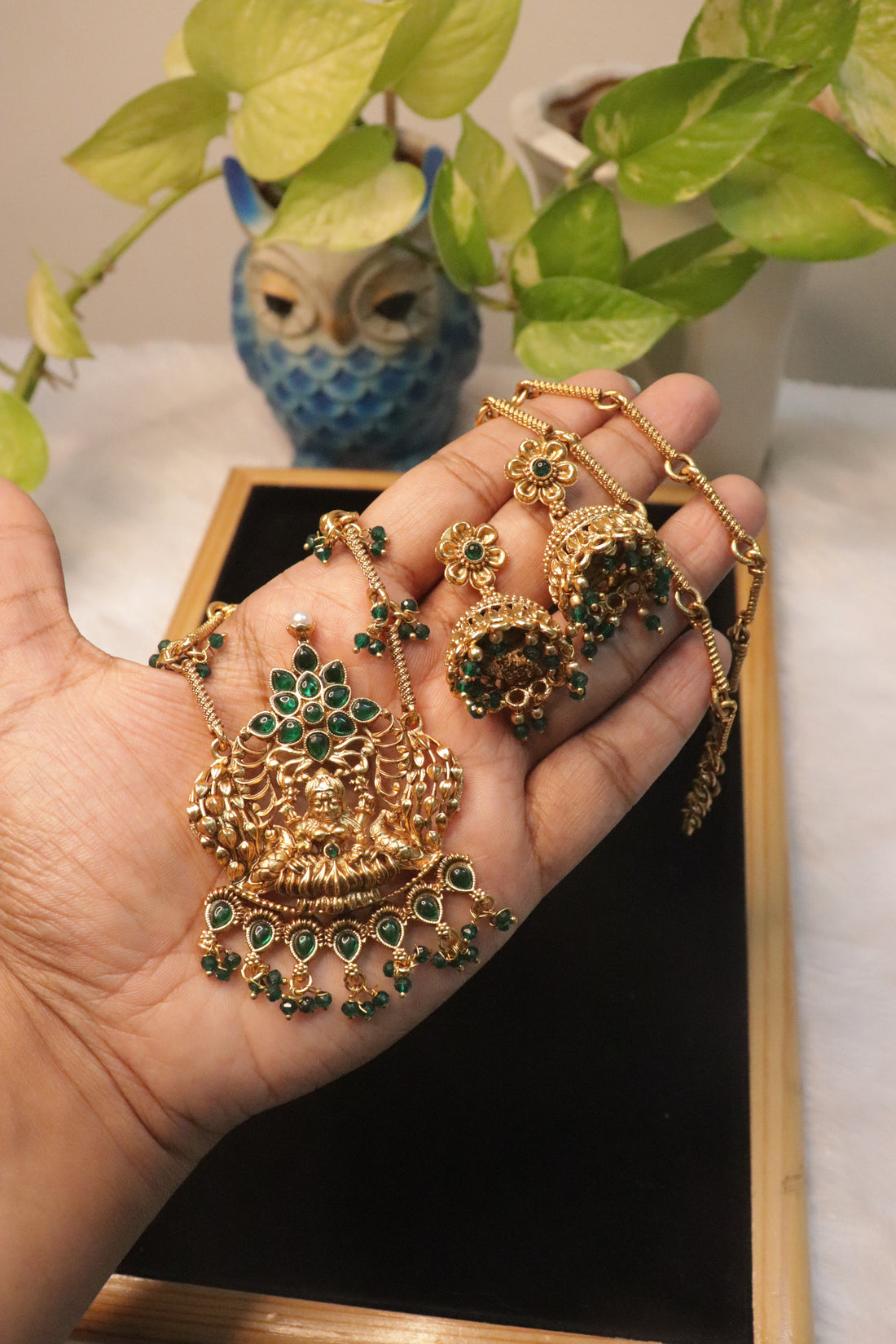 Aaradhya Antique Lakshmi Matte Necklace Set