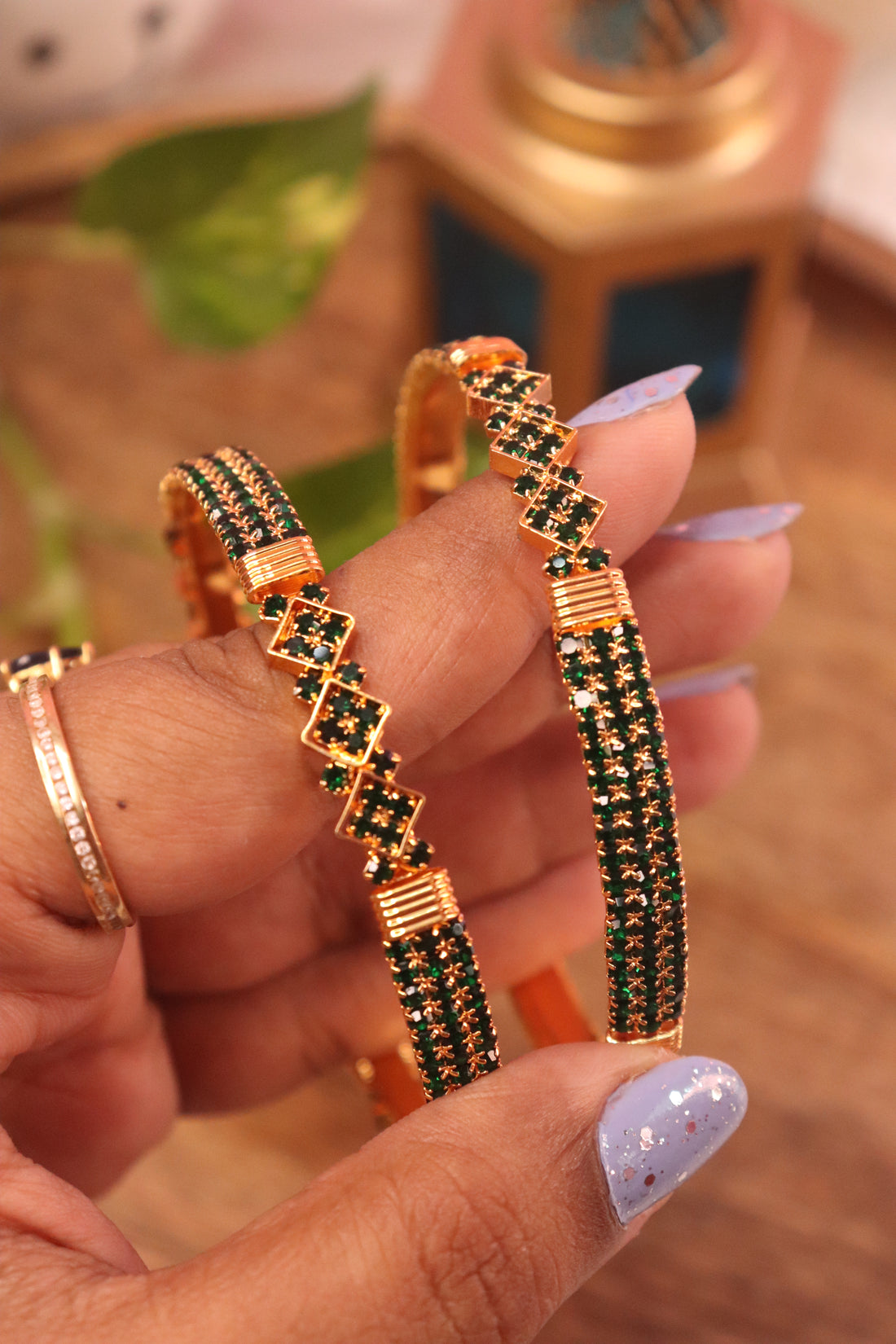 Dual-Tone Ruby & Emerald CZ Bangles in Gold Finish – Set of 2