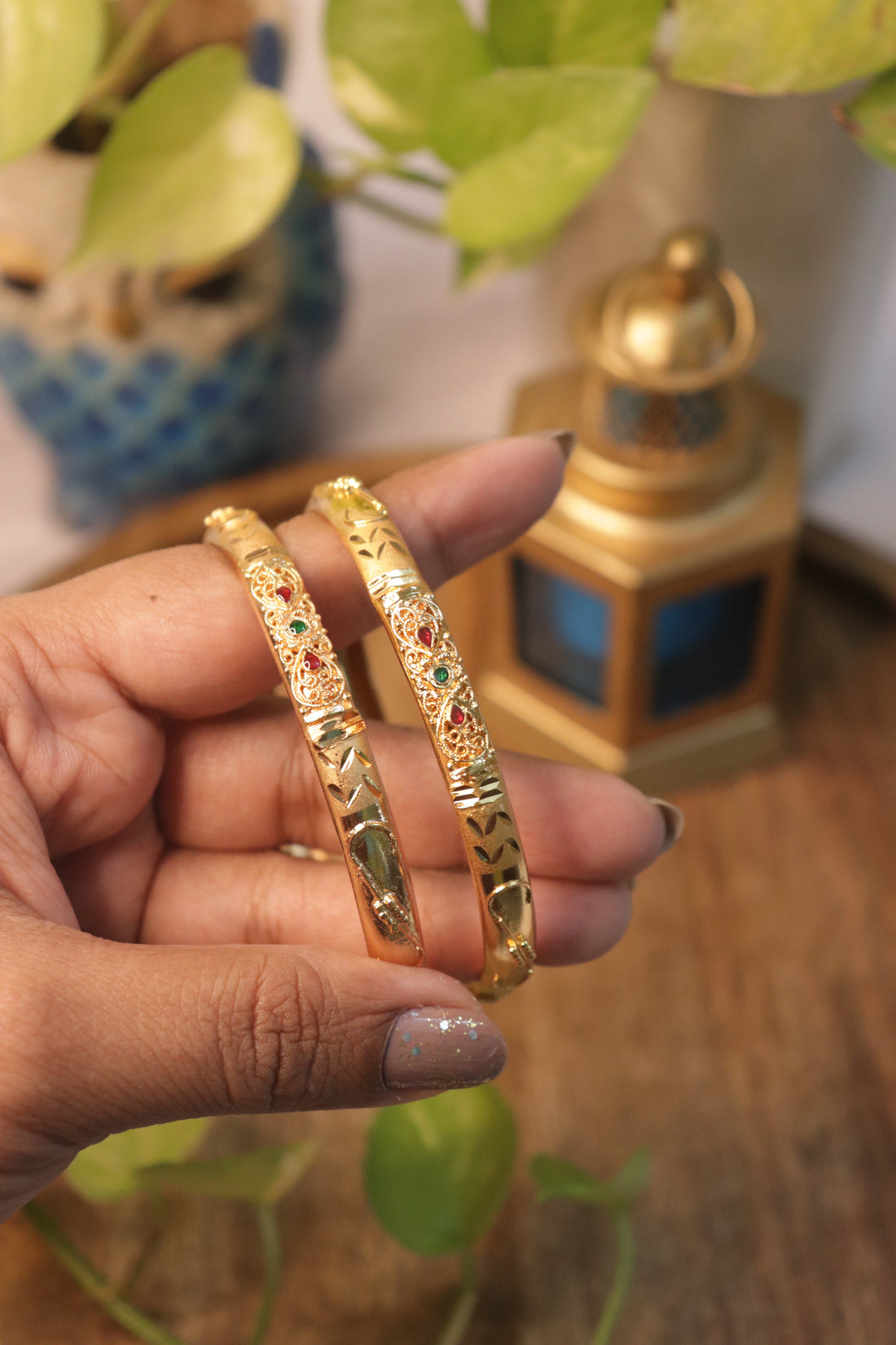 Gold-Plated Ruby Emerald Designer Bangles