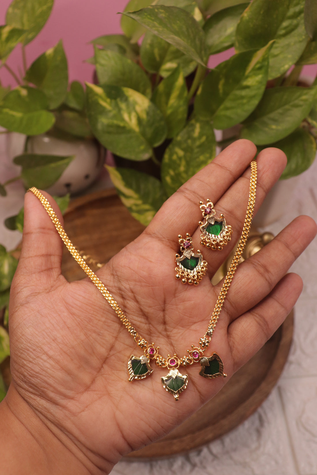 Traditional Kerala Palakka Microplated Necklace Set – 18"