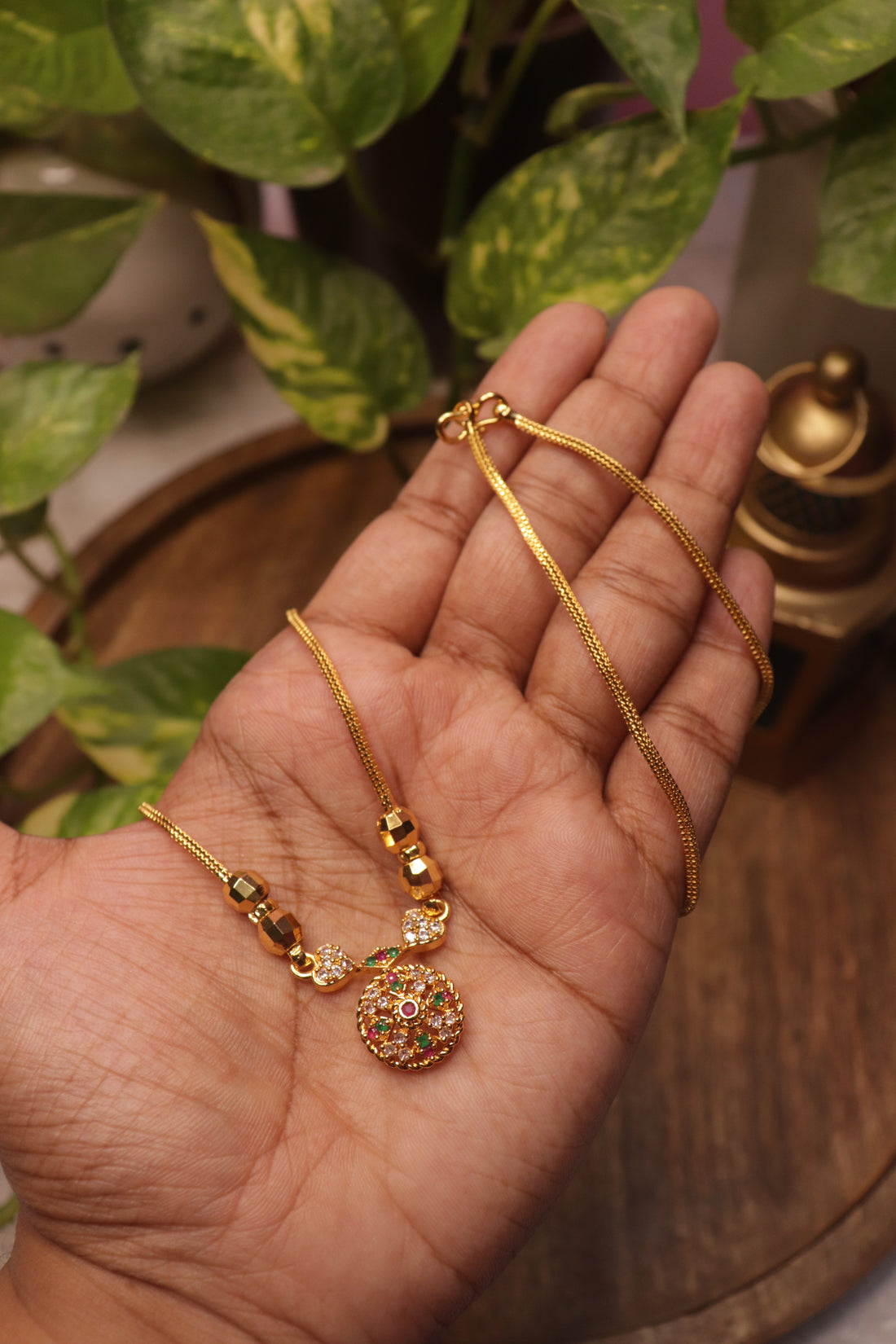 Embrace timeless elegance with the Multi-Stone Floral AD Dollar Chain, a graceful blend of tradition...