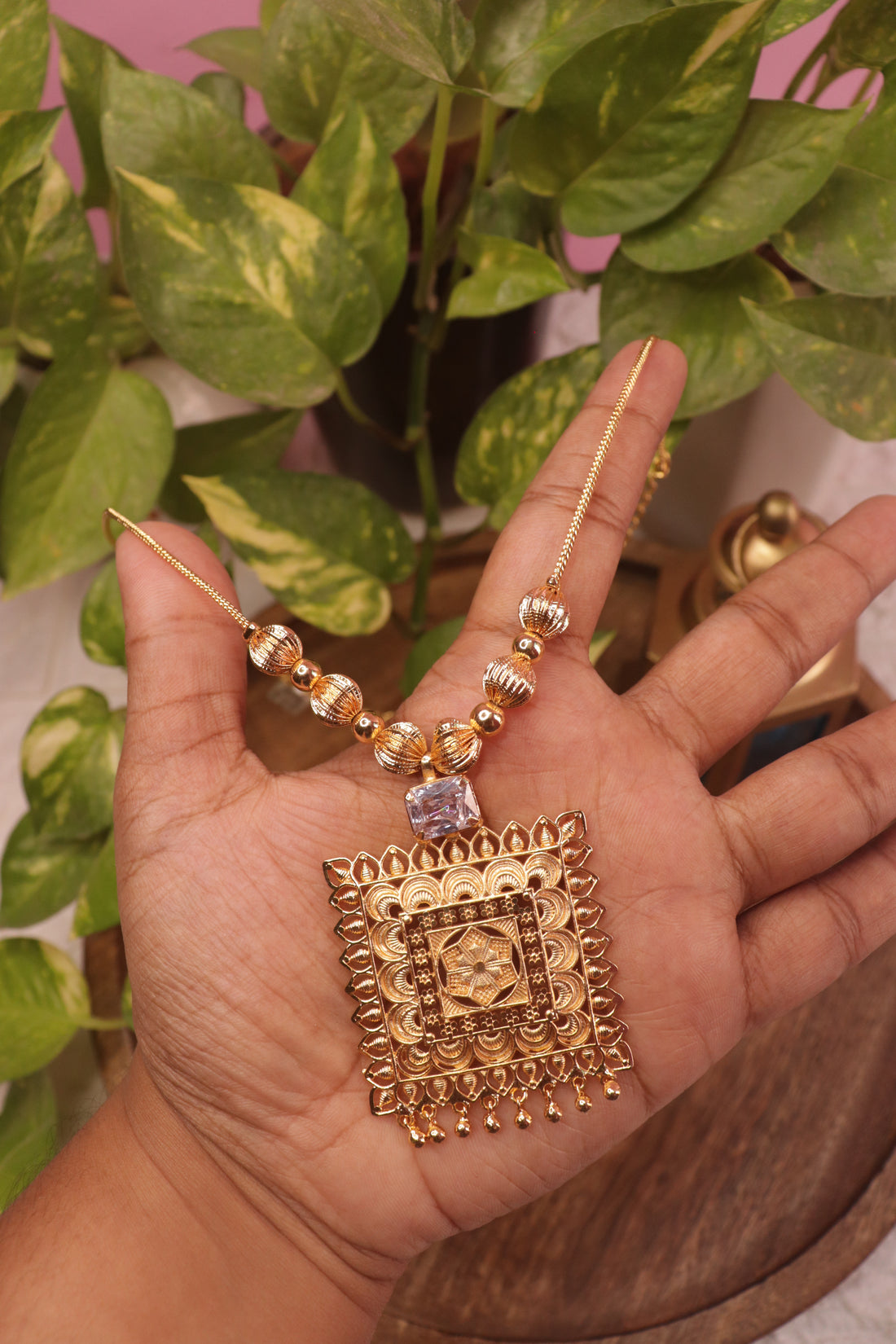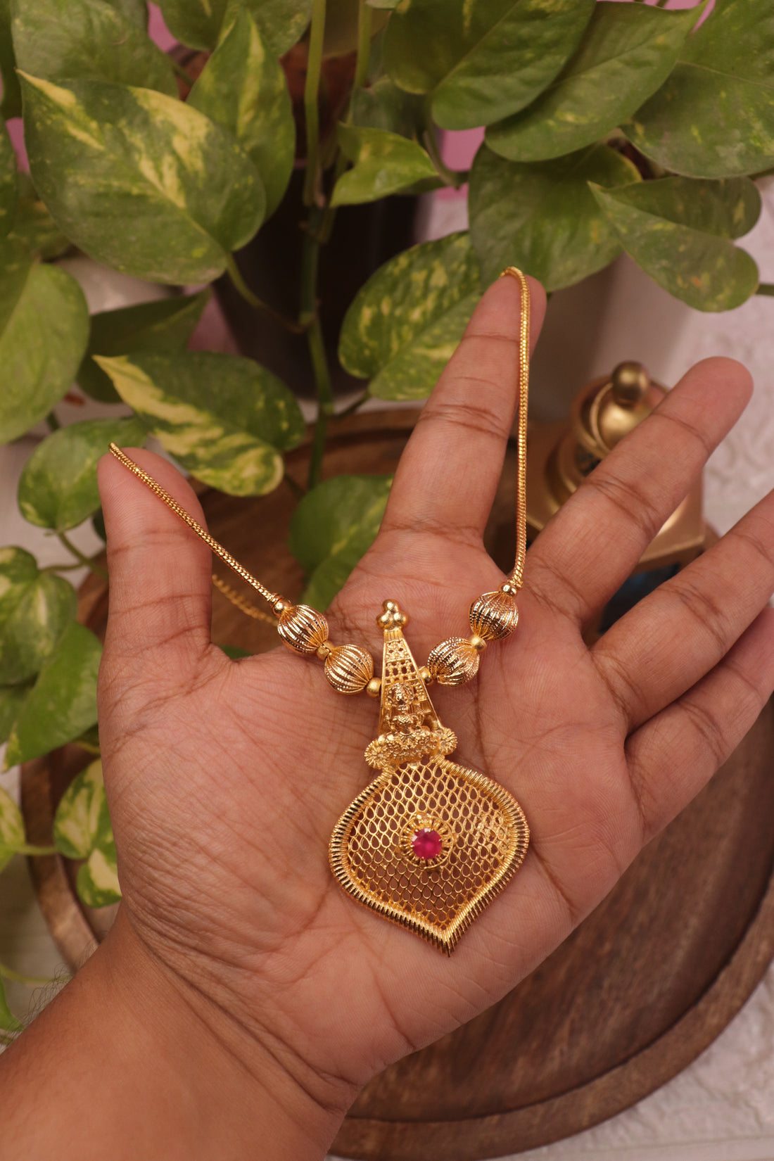Embrace timeless temple elegance with the Temple Net Design Microplated Dollar Chain, a graceful blend...