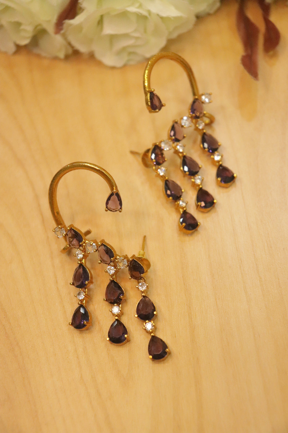 Swarna Cascade AD Bluetooth Earrings - Purple