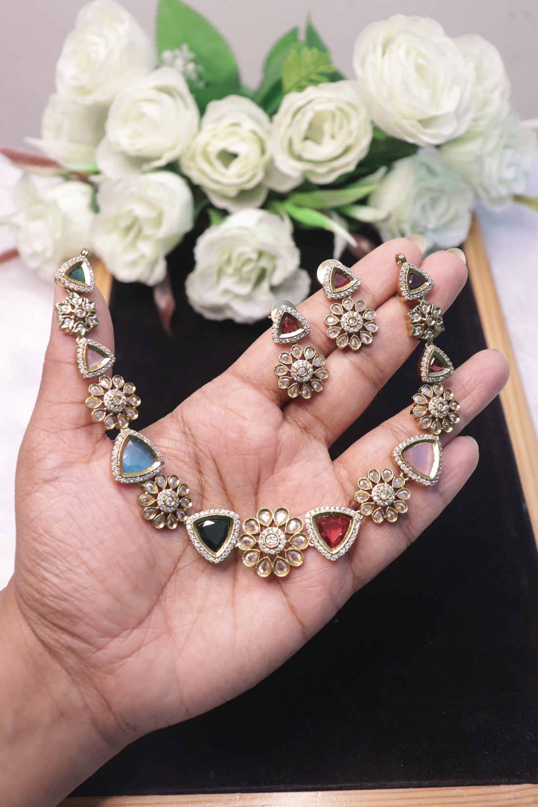 Ethereal and radiant, the Celeste Bloom AD Necklace Set brings together floral charm and modern...