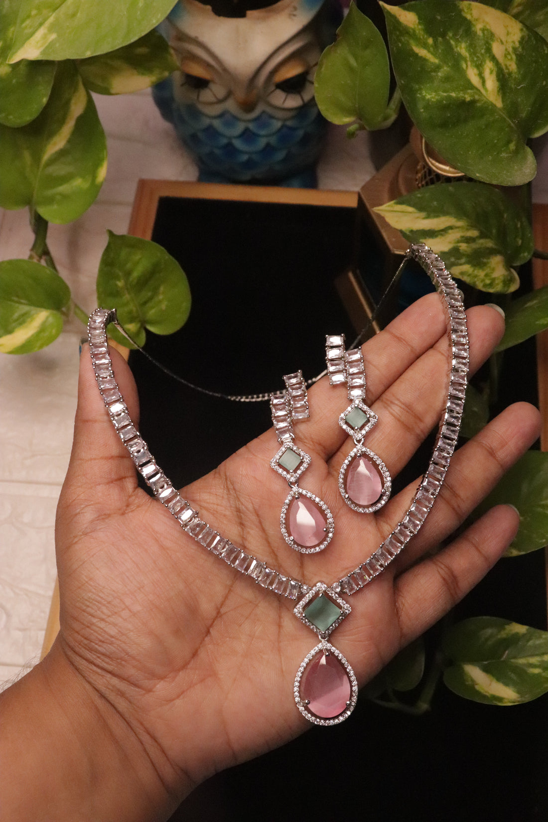 Step into effortless glamour with the Celeste Aura AD Necklace Set — a radiant blend...