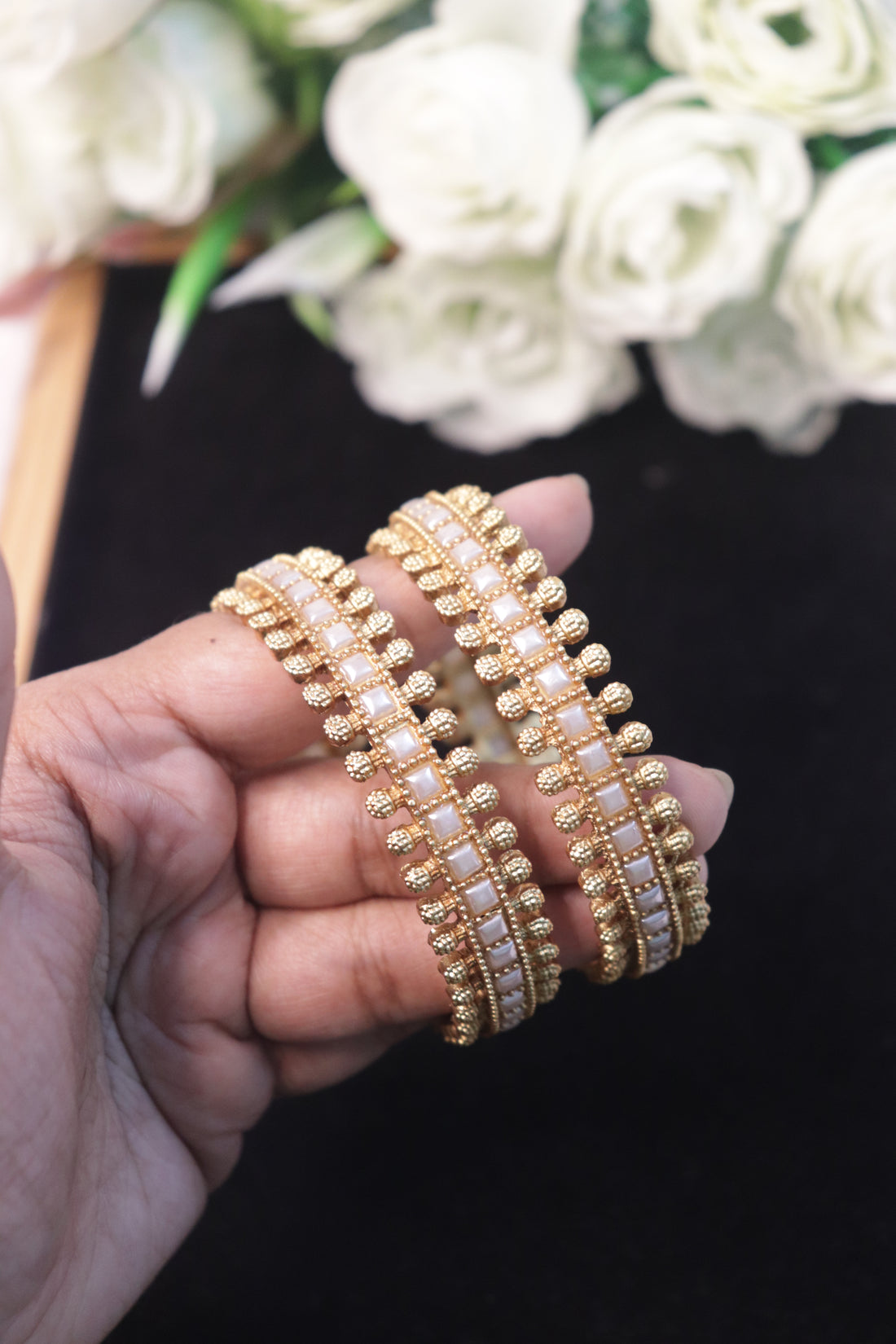 Elevate your traditional look with these Antique Gold Stone Bangles, crafted to perfection with intricate...