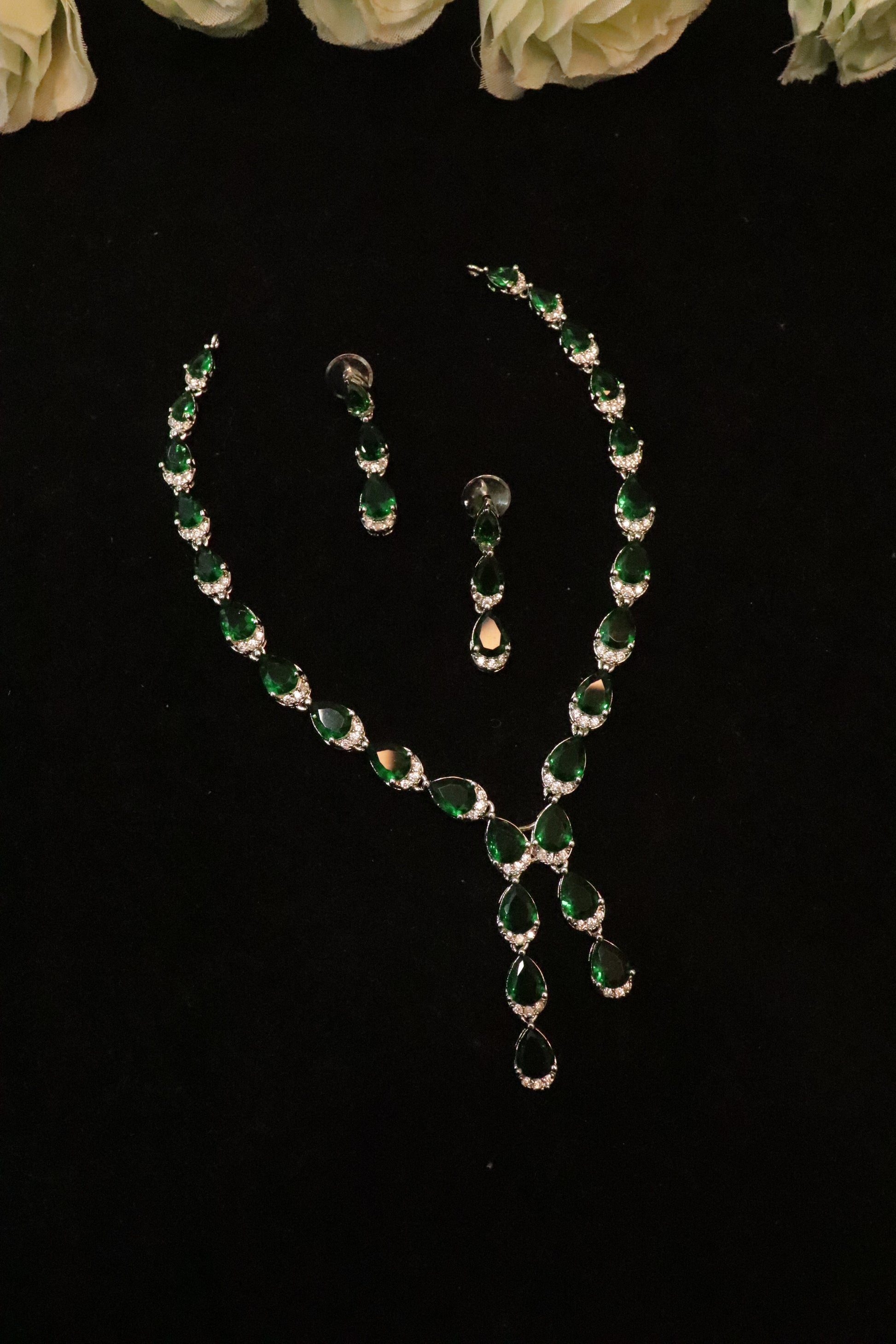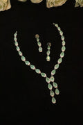 Exude refined charm with the Aqua Elegance Zircon Necklace Set — a graceful adornment that captures the serenity of sea-green hues and the brilliance of fine craftsmanship. Every teardrop-shaped stone radiates a soft, luminous glow that perfectly balances sophistication with subtle sparkle.
