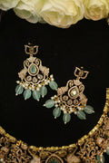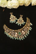 A symbol of heritage and grace, the Emerald Gaja Glow AD Necklace Set captures the beauty of tradition in a modern, radiant form.
