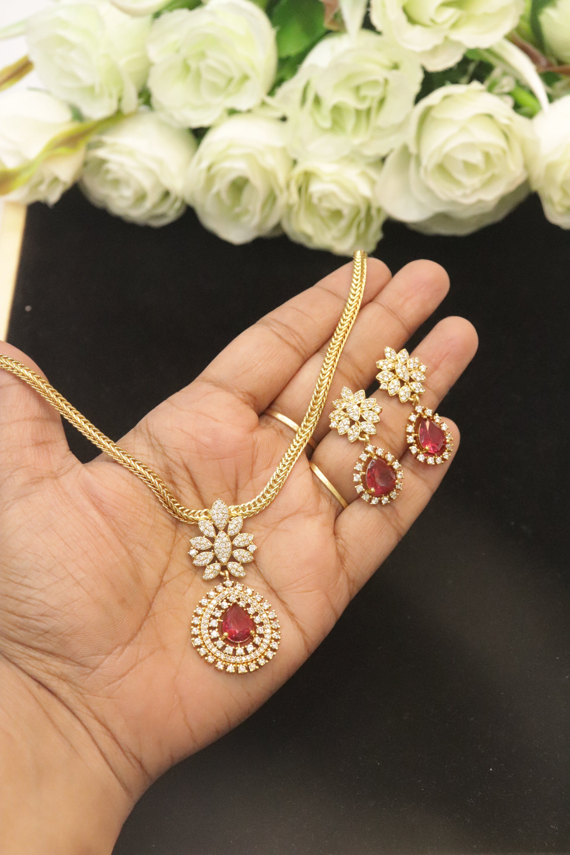 Floral Sparkle: Pendant and earrings accented with delicate floral motifs for a feminine touch.