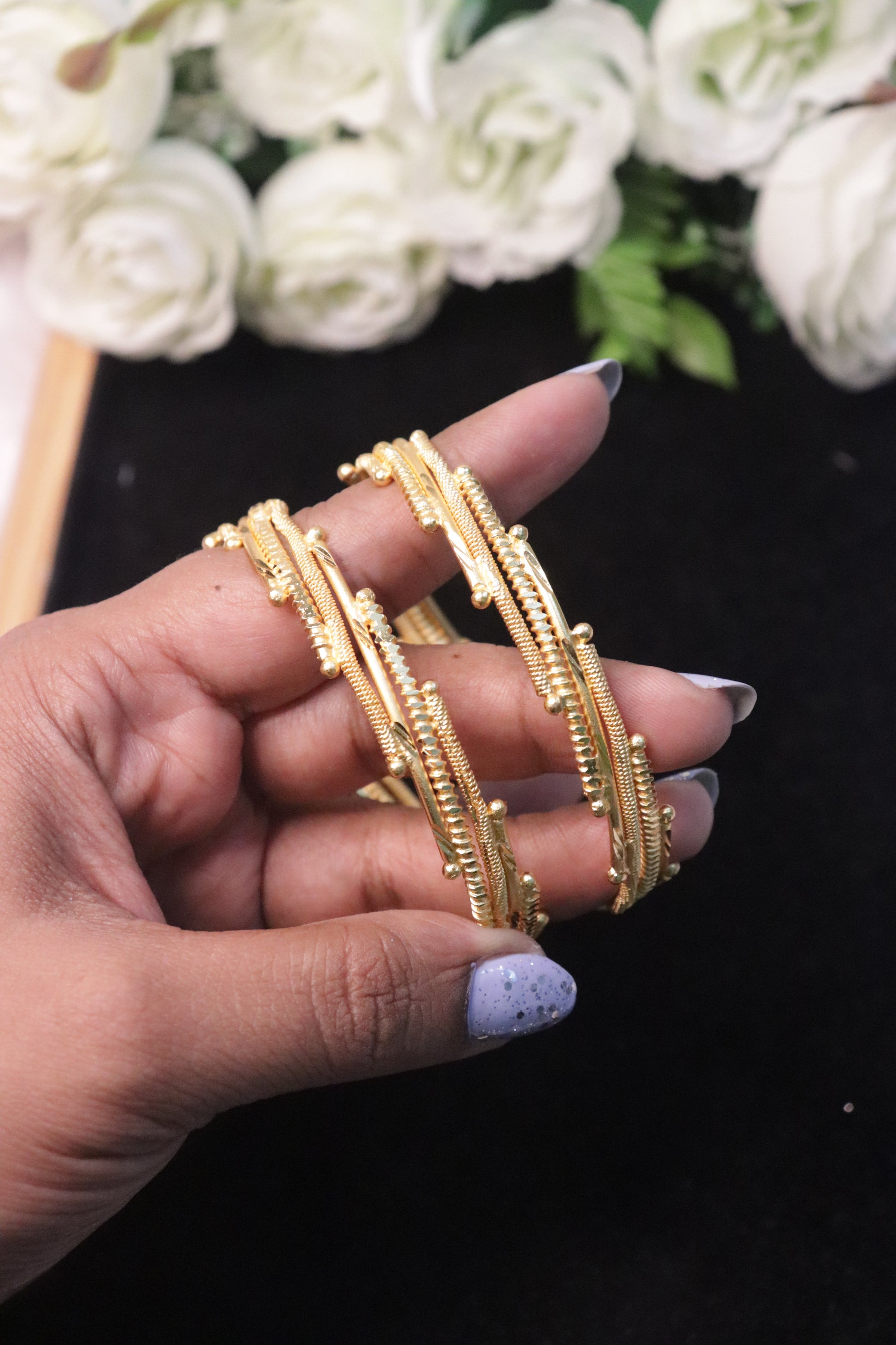 Golden Weave Microplated Bangles – Set of 2
