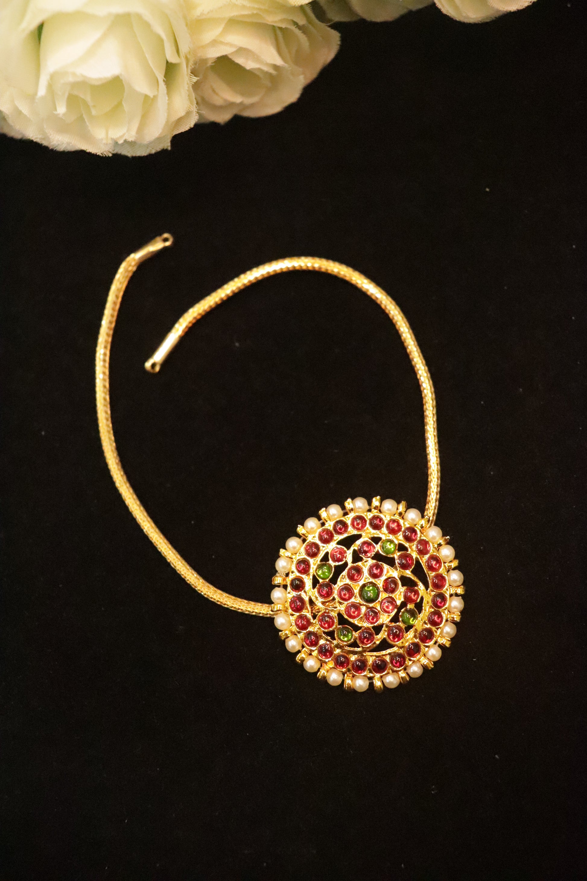 Material: Premium kemp stones with pearl detailing and micro gold plating