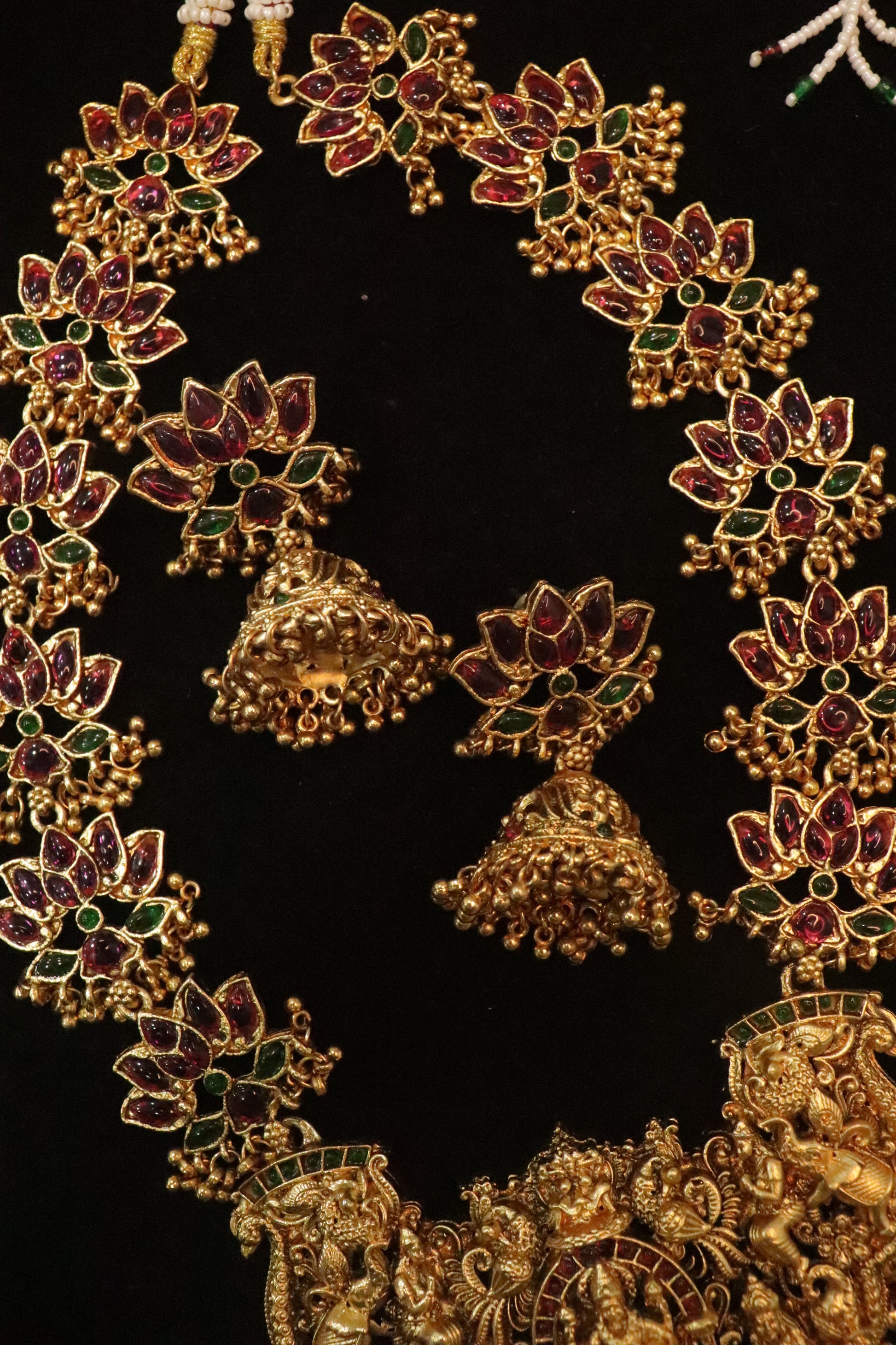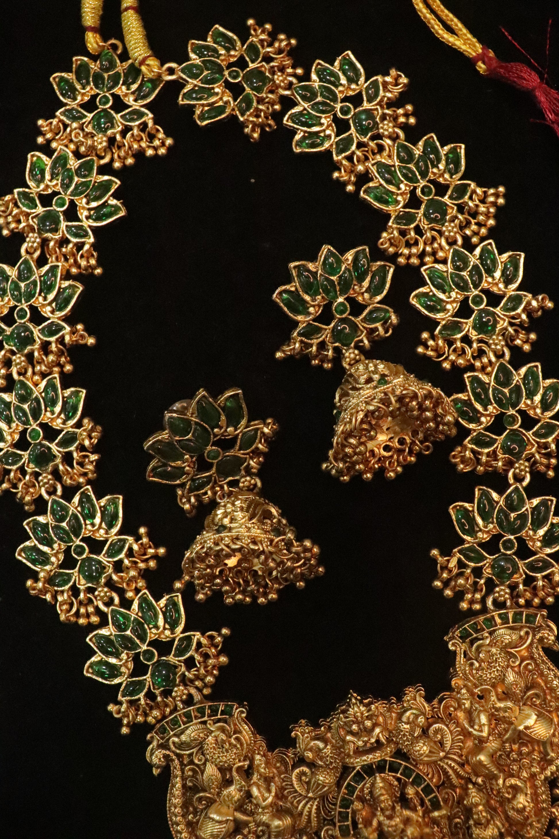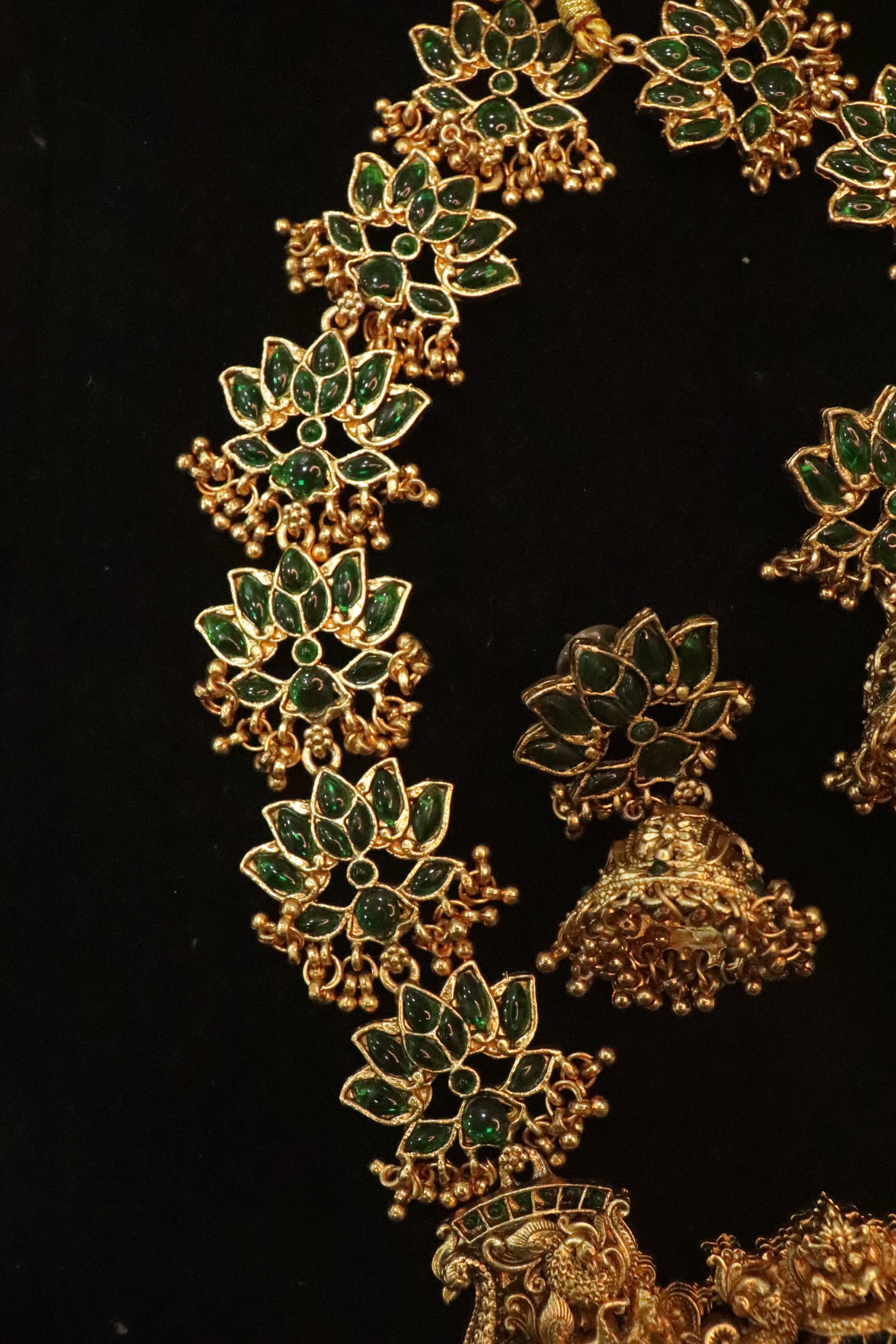 A masterpiece that echoes devotion, artistry, and royal allure — this Rani Haar is a celebration of divine femininity and traditional grandeur.