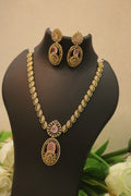 A statement jewellery set crafted for elegance and versatility, the Radiant Oval Double Drop AD Necklace Set adds refined glamour to every special moment.