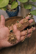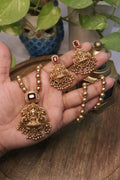 • Pendant Detail: Elaborately sculpted Lakshmi centerpiece adorned with delicate danglers.