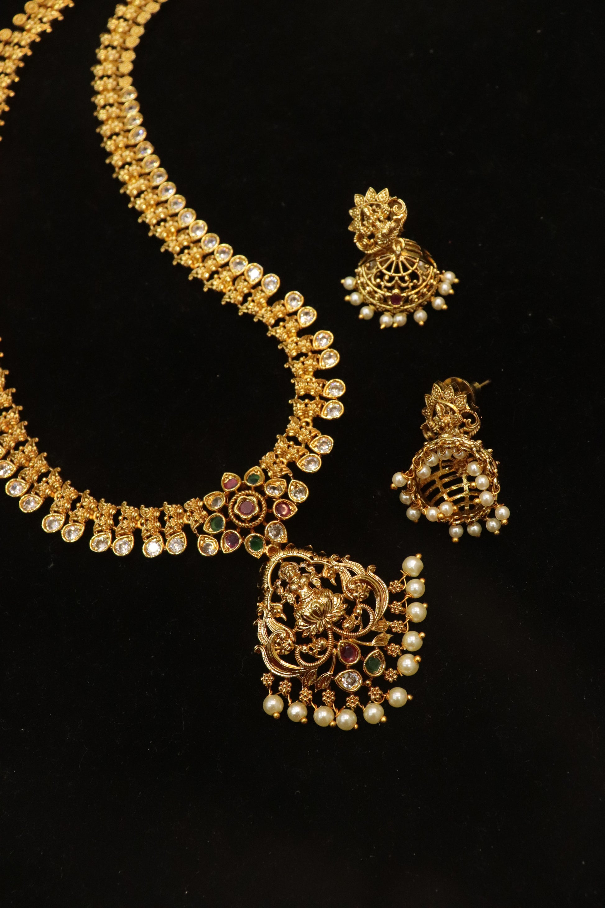 Regal Lakshmi Glow Temple CZ Necklace Set