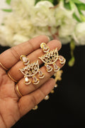 Elevate your festive elegance with the Royal Cascade AD Stone Statement Necklace Set, a graceful blend of modern brilliance and traditional charm. Designed with intricate craftsmanship, this stunning necklace features a flowing arrangement of sparkling AD stones with elegant teardrop danglers that create a regal cascading effect. The matching earrings mirror the same delicate artistry, making it a perfectly coordinated statement ensemble for grand occasions.
