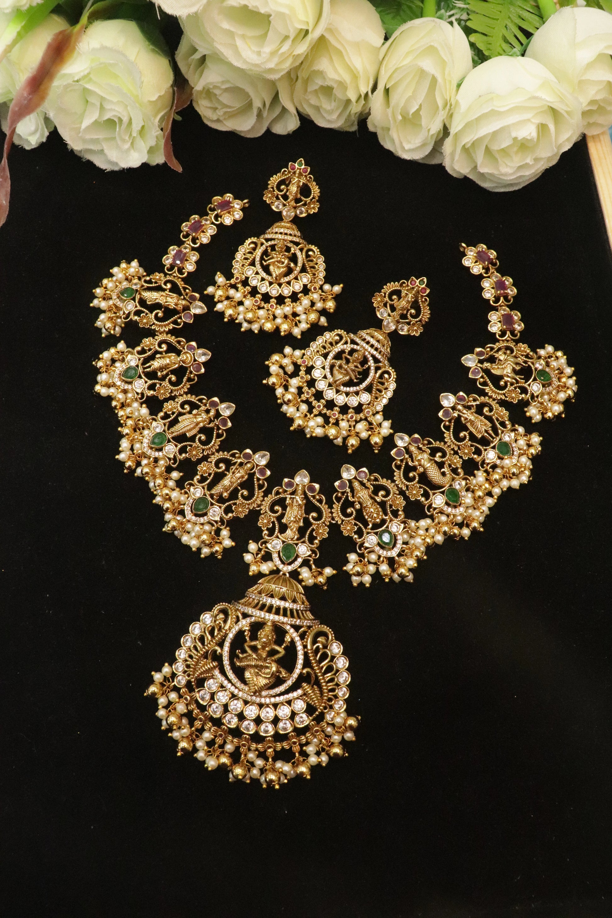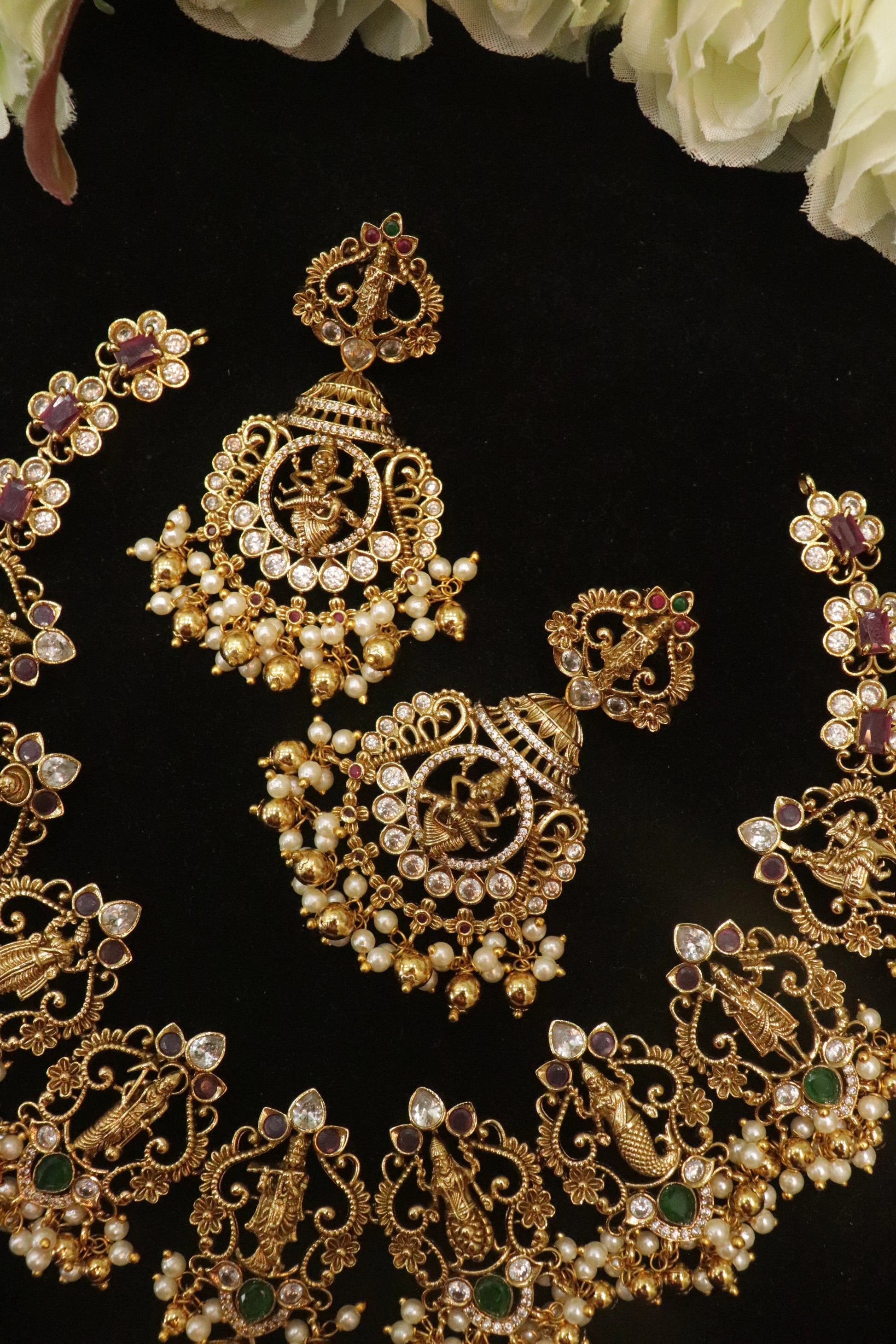 Celebrate devotion and artistry with the Divine Heritage Dasavatharam Antique Haram Set.