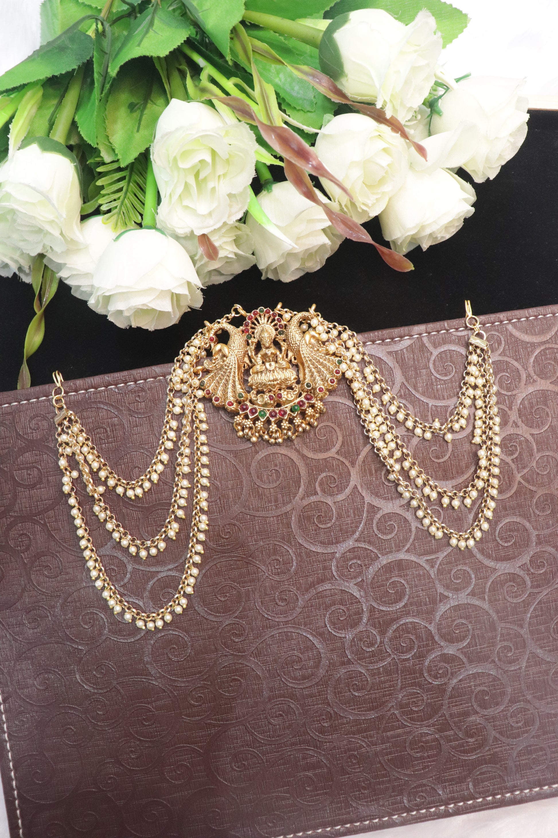 Goddess Lakshmi Centerpiece: Brings an aura of divinity and blessings to your traditional look.
