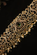 Elevate your bridal look with this exquisite Victorian CZ Stone Hipbelt, a luxurious fusion of elegance and timeless craftsmanship. Designed with intricate openwork patterns, shimmering premium CZ stones, and delicate pearl accents, this hipbelt adds a regal glow to any traditional ensemble. The antique gold finish enhances its vintage charm, making it a perfect statement piece for weddings and grand celebrations.