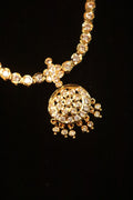 Step into timeless elegance with the Vintage Microplated Attigai Pendant Necklace, a graceful piece inspired by traditional South Indian heritage jewelry. Designed with a delicate line of shimmering stones and a beautifully crafted circular pendant, this attigai reflects classic charm with a modern refined finish.